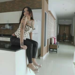 At a VIP table tucked deep inside a popular Pattaya discotheque, you might find a table of super hot bitches and one of those chicks will likely be big natural tittied, Manny. This busty Diva has ownership of lots of dim-witted men and their nearly empty wallets. Manny is a natural-born hustler, and she's not stupid. It took a boat-load of money to convince Manny to even consider shooting a porn video with me. Luckily, a family problem occurred and Manny needed access to fast cash. I dropped everything I was doing to take advantage of this rare opportunity and invited Manny over to my studio. Manny was wearing this hot corset with her big boobs poking out the top of it. Her black skin-tight pants were revealing her sexy curves. Manny opened her corset and her huge melons just plopped out. What a beautiful site. My cock sprung to action and Manny got down on her knees and started sucking it like a champ. I then bent Manny over the counter and entered her wet pussy without the mention of a condom. We then ventured down the hall to find a softer place to fuck and proceeded to tackle all the major positions. I finally was ready to cum and without a warning, gave Manny a creampie surprise by shooting all my cum deep inside her pussy. Manny didn't seem to mind and that my friends is the definition of a proper whore.